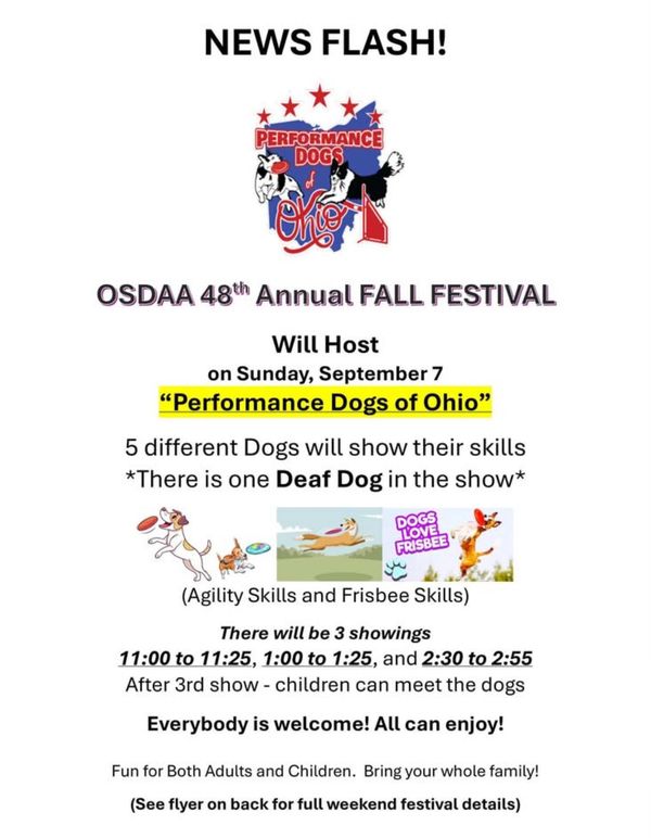 During the Fall Festival, you'll be able to view a once in. life time dog performance show! Everyone is welcome to join